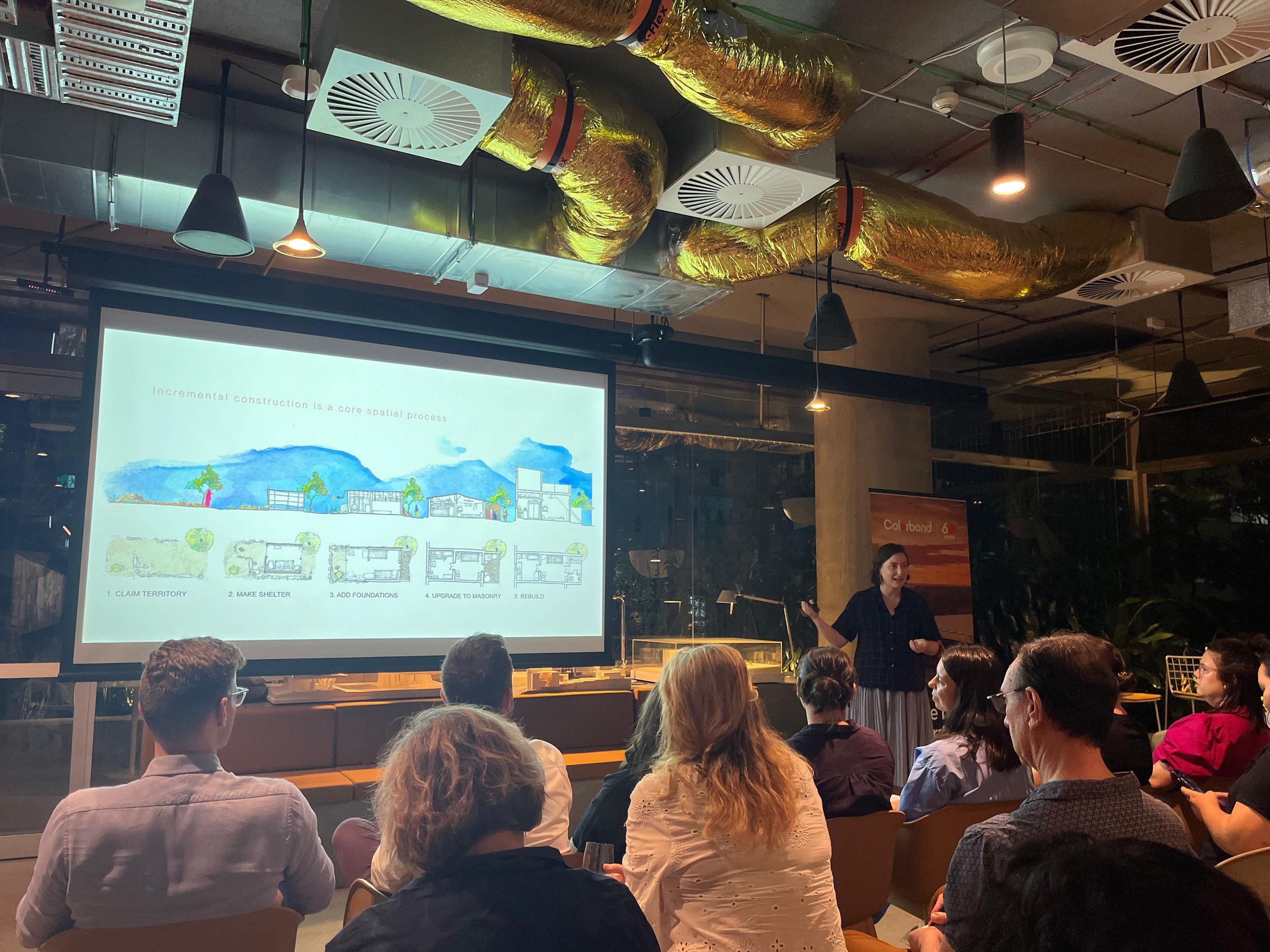The Q&A was the most demanding of the tour — personal, expansive, and with nowhere to hide! Questions ranged from how to inject joy into daily practice, how to navigate discomfort without being consumed by it, to what I imagined my career would look like as a first-year student (I had no idea — I didn't even know what a section was!). What I noticed, was that the questions kept circling around similar themes: how do we practice ethically, sustainably, and with care — for communities, for colleagues, for ourselves? My answer to many of the questions was some version of the same thing: get involved, build relationships across disciplines, know that trust is built when things go wrong and it is how you repair that matters, and let the feelings move through you rather than block them out. While I didn’t plan a core message, audience members returned to my discussions on the need to sit with discomfort: to resist the urge to immediately smooth over challenge, and instead to stay with it, learn from it, and keep looking ahead to the next step. They also highlighted a deep resonance with the idea that relationships are infrastructure: the networks of trust, care, collaboration and connection that sit behind strong practice and meaningful work or the way a well-intentioned design can fail when architects prioritise imposing solutions over understanding the social realities.