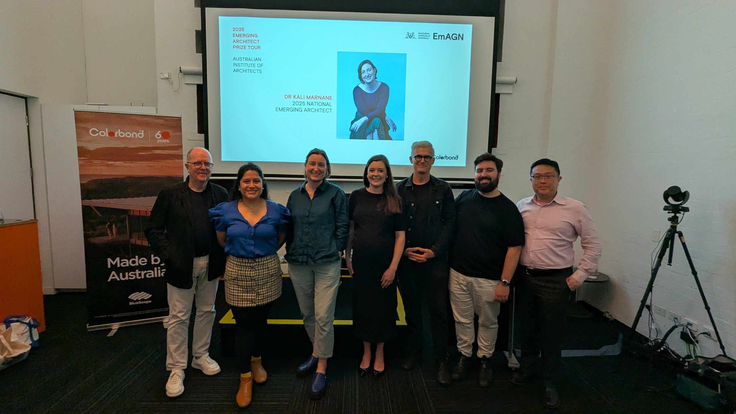 In boorloo, the 2025 Emerging Architect Prize Tour came to a close with Emily Duncan of Woods Bagot Perth offering a talk about finding balance between labour and expertise, between empathy extended to users and empathy extended to the people doing the work. Emily led the Metronet project, a $1.65 billion metro line with five new stations, and spoke about what it takes to hold a design narrative clearly enough that every stakeholder — from builder to community member — understands the intent and can make decisions in service of it. Her two strategies for sustaining a healthy studio were mentorship and psychological safety: the recognition that architecture is built on criticism, but criticism without empathy stifles the very creativity the profession depends on. She spoke about industry retention through parenthood, and about expecting her first child in two weeks and how her future will be still about finding the balance and figuring it out in real time. It felt like a fitting note to end on. Across every single state on this tour, parenthood has surfaced as a theme the profession is circling but hasn't yet resolved. So has the question of how to extend to our own workplaces the same care and attentiveness we aspire to bring to the people we design for.